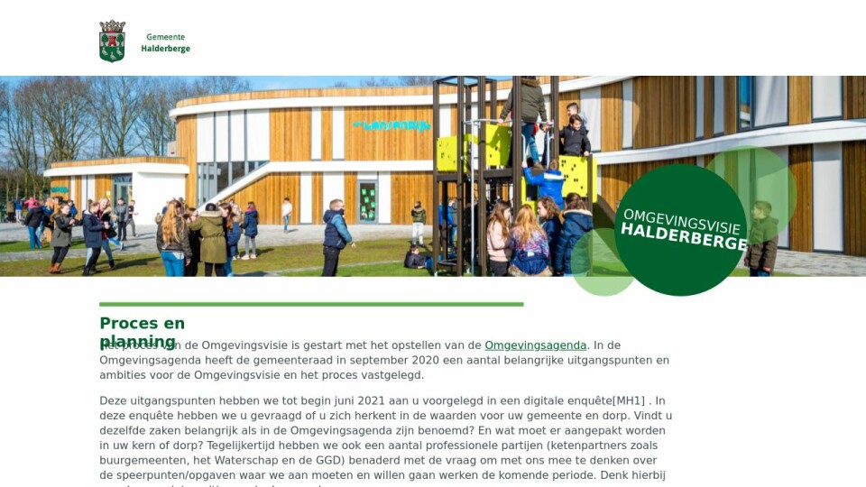 In de zomer van 2021 werken we de input uit tot een eerste conceptversie van de Omgevingsvisie. Tegelijkertijd willen we u uitdagen om ons, tot 28 augustus, te voeden met ‘goede ideeën voor de toekomst van Halderberge’ d.m.v. een prijsvraag. Meer informatie hierover vindt u in de agenda. In september gaan we vervolgens met u in gesprek over de concept omgevingsvisie.